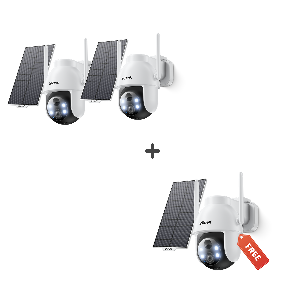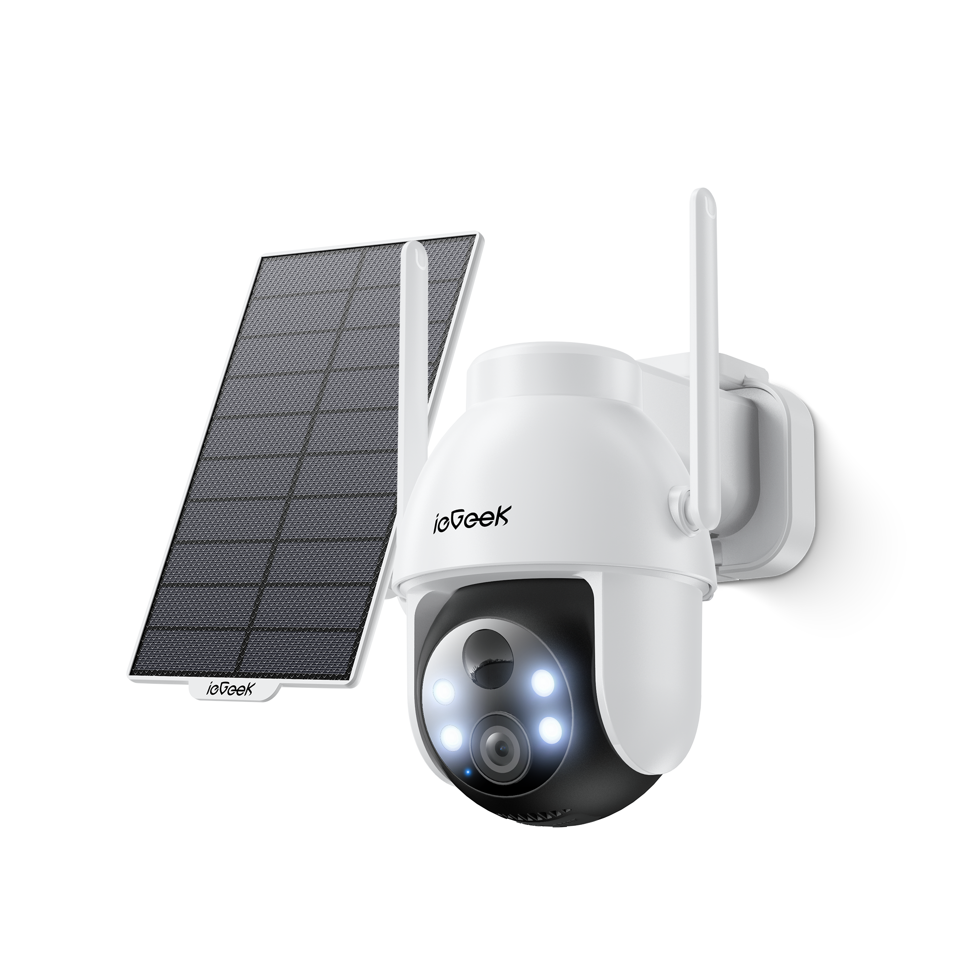 - 2K Full Color Image & 360 View: The ieGeek security camera is equipped with the latest CMOS technology and 3MP high pixel, which provides 1.5 times more detail than traditional 1080p cameras. Built-in 2 IR lights and 2 white lights provide you with clearer color night vision. Outside cameras for home security with 355° pan, 120° tilt, and 4x digital zoom capability (no auto-tracking), provides 360° surveillance of any corner to secure cars, yards, and other properties.
