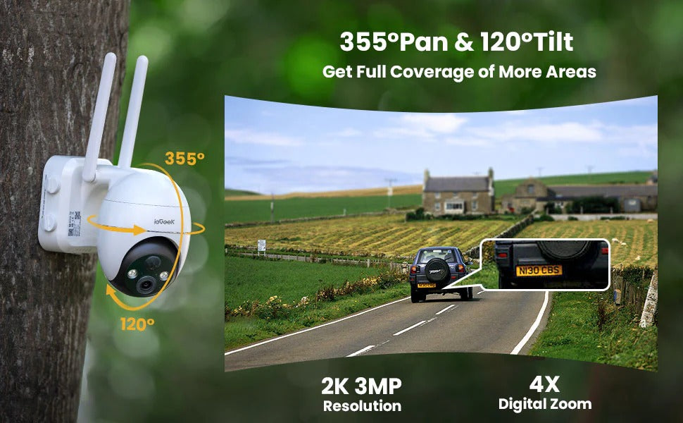 • 360° View & 4X Digital Zoom: 2K high resolution with 4X digital zoom and pan 355°& tilt 120° provides a wider and more flexible view angle.