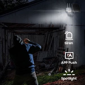 When the solar camera detect motion, it would send motion detection notification to your mobile phone, at the same time, it will triggers the spotlight alarm, smart siren to ward off the unwanted guests. This can be turned on and off through the APP setting.