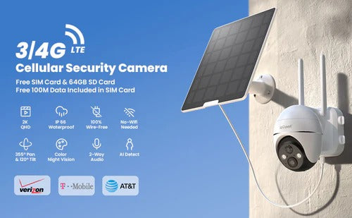 • Widely Compatibility 4G SIM Card & Comes 64GB SD Card: ieGeek no wifi security camera supports 4G network of Verizon, T-Mobile and AT&T. Along with this wireless outdoor camera, you will get a SIM card with 100M free data, no activations, contracts, or other hidden fees to use this card.