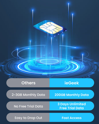 • Built-in SIM Card: 3G/4G LTE Connectivity & No WiFi Required: The ieGeek ZY-G3 operates on the 3G/4G LTE cellular network via a pre-installed SIM card, eliminating the need for WiFi. It's powered by solar energy, allowing you to install it in places without WiFi or electricity, such as farms, stables, and remote areas. The package includes a 3-day free trial of data, and the SIM card comes with an unlimited data plan for uninterrupted surveillance.