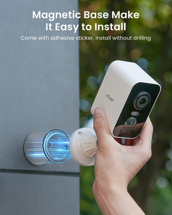 • New Upgraded Magnetic Bracket & No Drilling No Holes: ieGeek security camera come with magnetic bracket and adhesive stickers, you don't need to drill holes to install it anymore. Adhere the sticker to the wall, and adhere the magnetic base to the sticker, and attach the camera to the magnetic base, then done! You can easily install it within 3 minutes and leave no holes in the wall.
