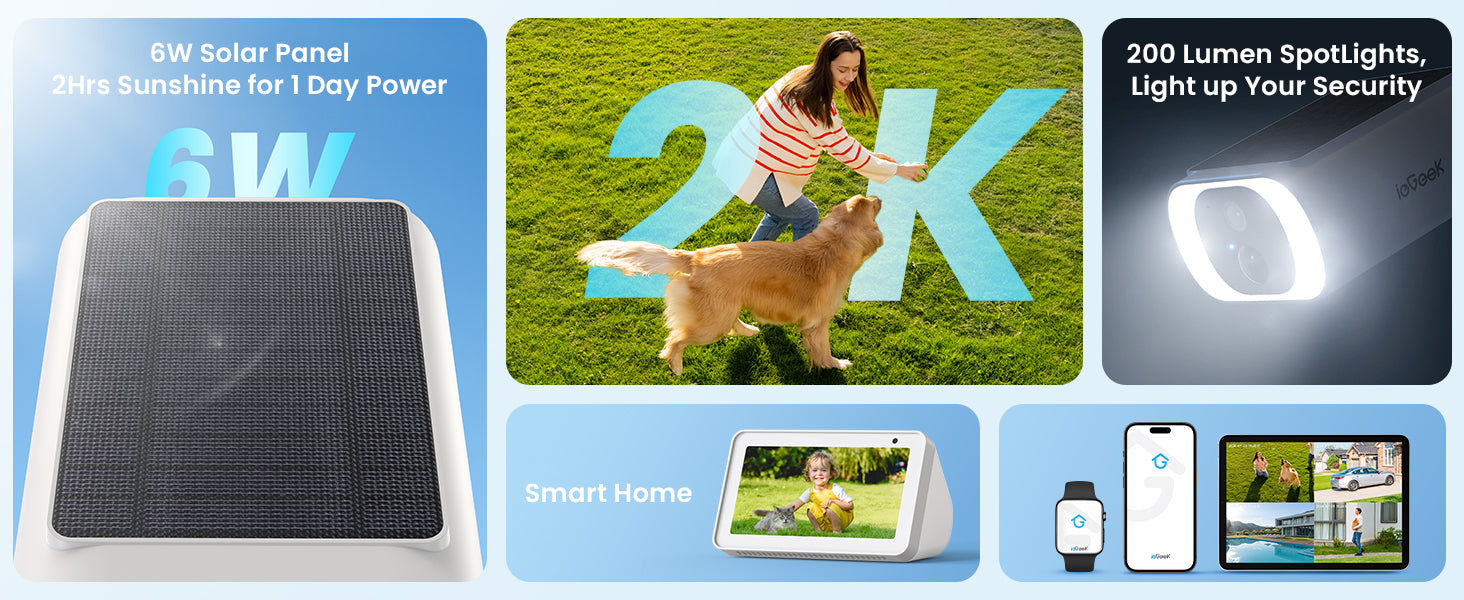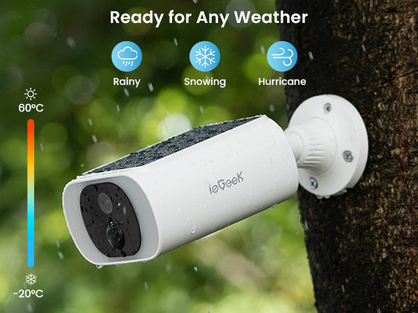 ieGeek outdoor solar security camera has upgraded lens, providing you with 2K picture and video whether day or night. You can monitor garden/front door/garage more clearly and won't miss any details!