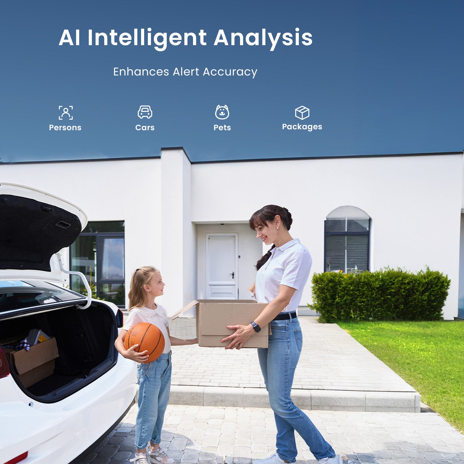 The Wi-Fi camera intelligently distinguishes persons, vehicles, packages, and pets from other objects with a powerful human shape data-base, dramatically enhancing alert accuracy.
