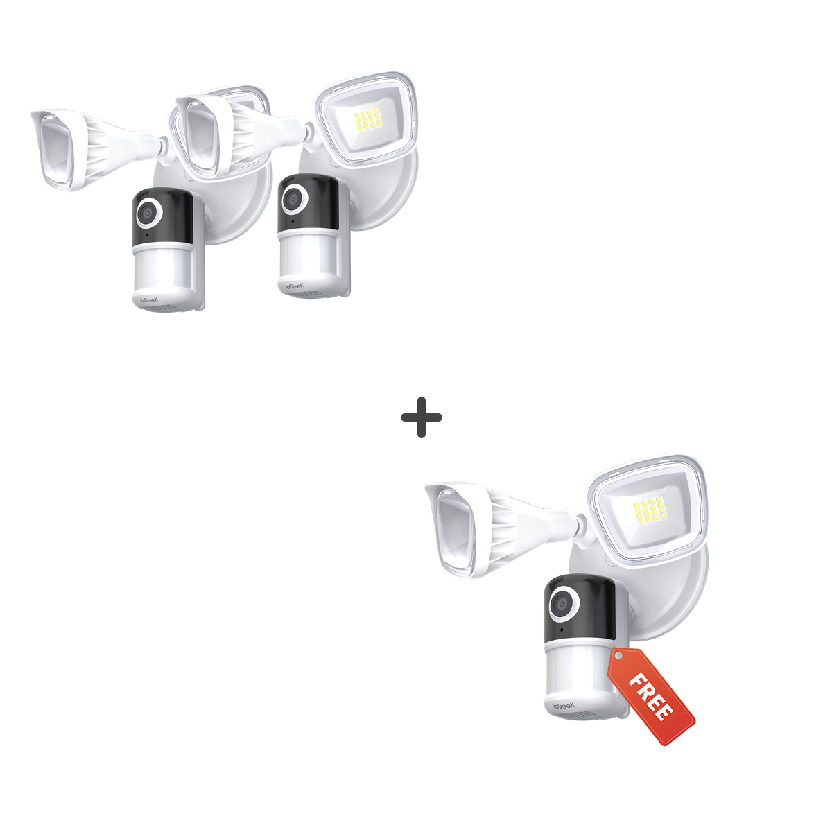 - Covering a wide 150° field up to 49ft (15m), the motion sensor instantly activates the 6000K floodlights and alarm system, sending an immediate notification to your ieGeek Cam App.