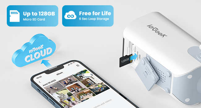 - Storage Methods Supports cloud storage and SD card storage (supports up to 128GB)