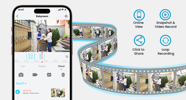 Cloud storage account (7-day trial) allow you to store every video in the cloud.