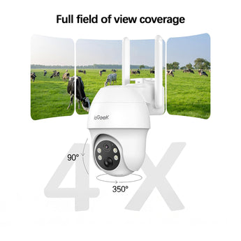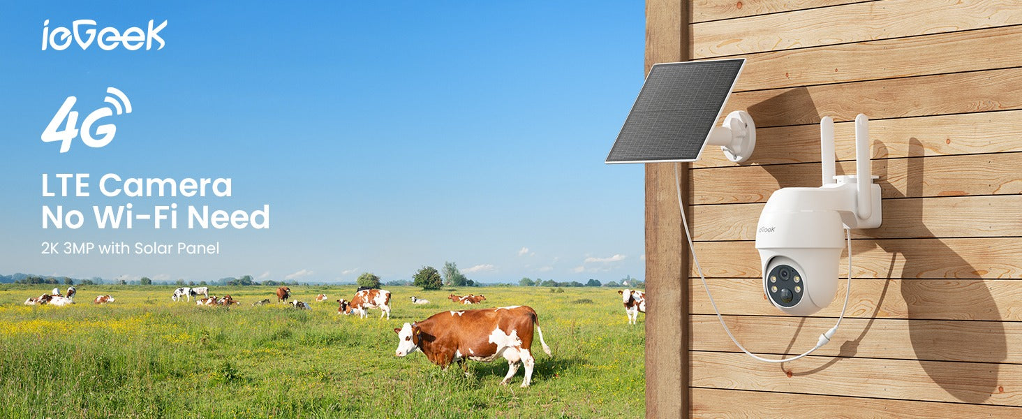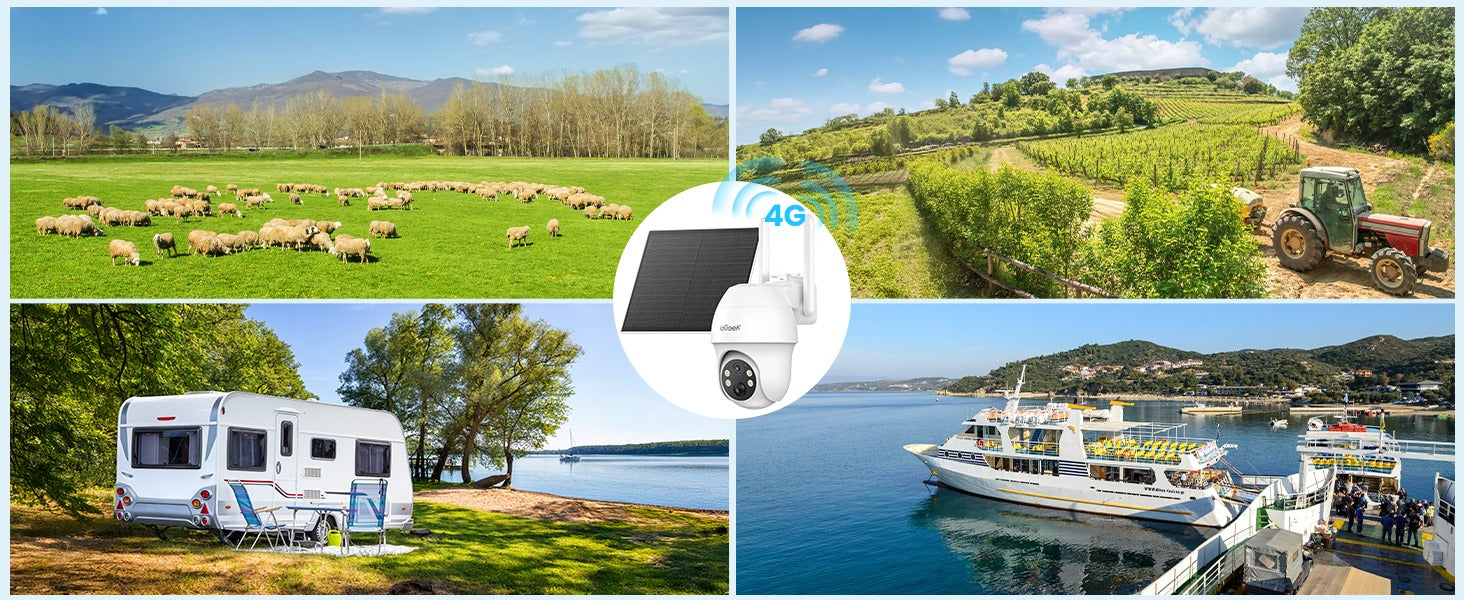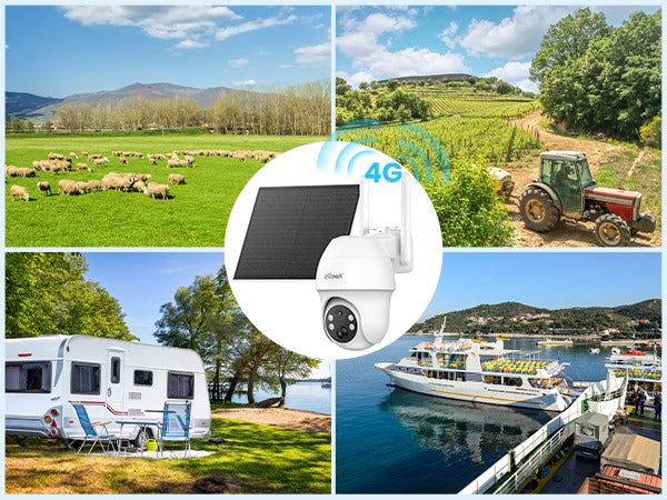 • 4G LTE Cellular Security Cameras Wireless Outdoor: ieGeek 4G LTE cellular camera is designed for places without wifi & electrical power, this security camera can work with nationwide 4G network, 100% wire-free, no wifi needed, perfect for outdoor places, such as barn, farm, ranches, construction sites, vacations homes, warehouse, RVs, wildlife studies. With IP66 waterproof, the security camera perform well in bad weather like rain and cold.
