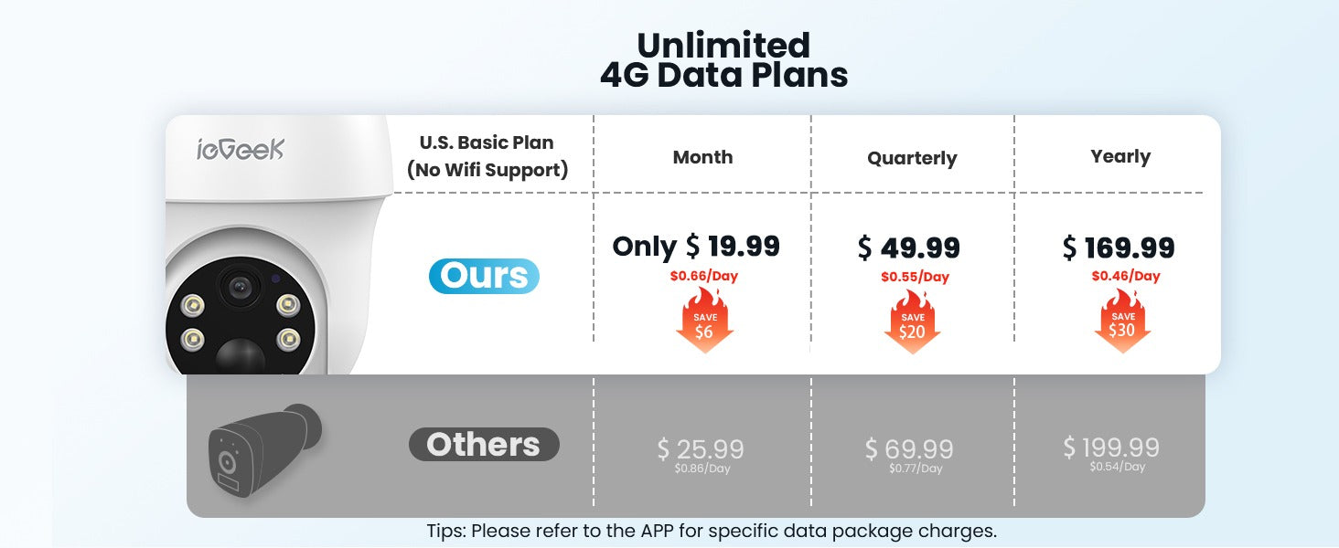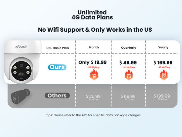 • Widely Compatibility 4G SIM Card & Comes 64GB SD Card: ieGeek no wifi security camera supports 4G network of Verizon, T-Mobile and AT&T. Along with this wireless outdoor camera, you will get a SIM card with 100M free data, no activations, contracts, or other hidden fees to use this card.