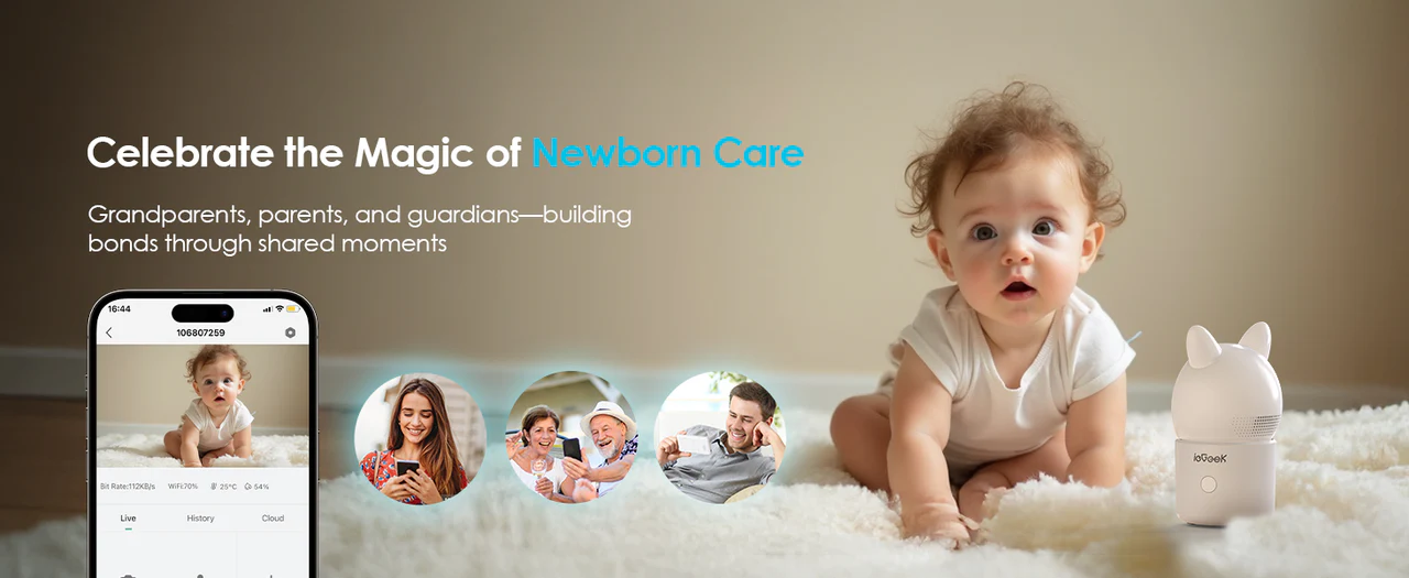 - Smart Care Assistant: Simplify parenting with custom feeding timers and real-time room temperature & humidity monitoring.