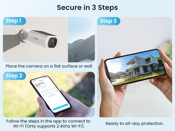 Compared with traditional solar camera, you don't need to install solar panel. Help you save space and time! Just mount camera on the wall, then done! Take less than 10 minutes.