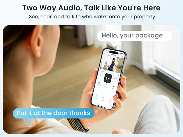 Noise-cancelling mic cuts wind interference while HD speaker delivers studio-quality sound. Warn delivery drivers or soothe pets from anywhere.