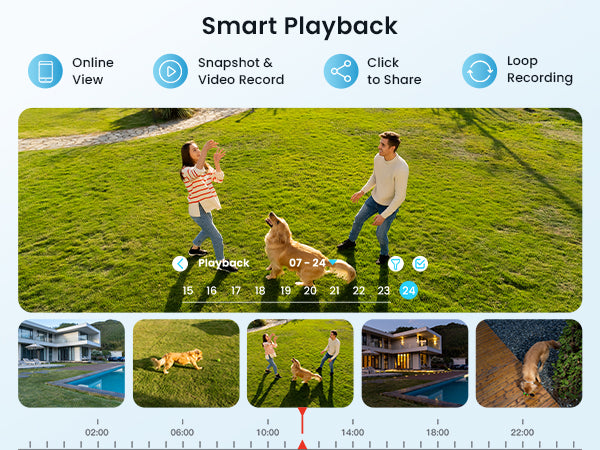 Timeline scrubbing with 4X fast-forward. Bookmark critical events like package deliveries for instant review on phone/watch.