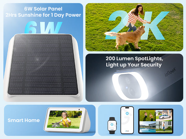 ieGeek outdoor solar security camera has upgraded lens, providing you with 2K picture and video whether day or night. You can monitor garden/front door/garage more clearly and won't miss any details!