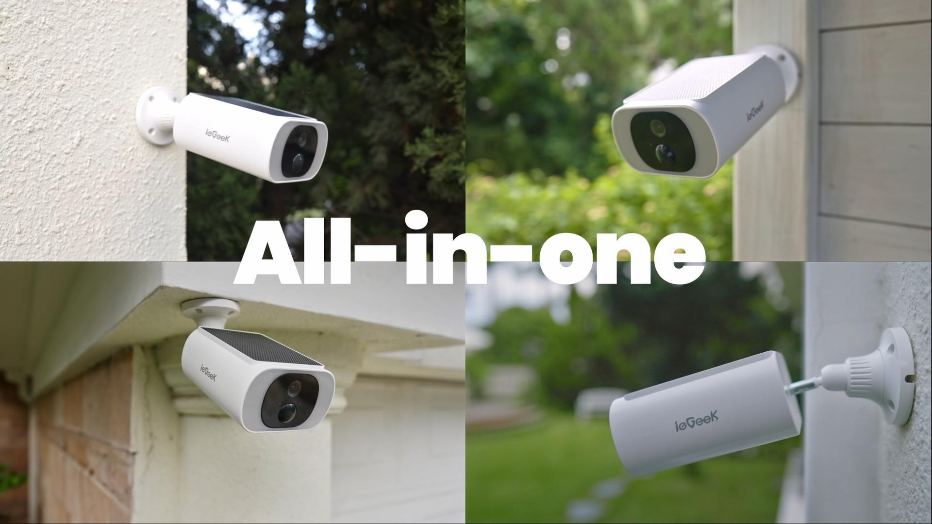 - All in One & 100% Wireless & Easy Set Up: ieGeek all-in-one outdoor security camera is powered by solar and connected to network via WiFi, you don't need to run any annoying electric power cord and network cable. Just mount camera on the wall, then done! Takes less than 10 minutes. It's 100% wire-free and easy to set up. After download the app and link the camera to it, you can monitor property via the app remotely.