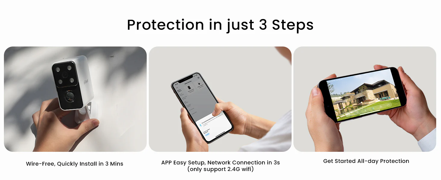 - 3MP Clarity, Day or Night: Capture exquisite details in every frame with this security cameras wireless outdoor boasting a 3-megapixel. Night becomes day with enhanced night vision technology, the wifi camera allowing you to discern faces/object details in dark situations up to 33ft(10m). It's not just about seeing in the dark, it's about seeing clearly, always.