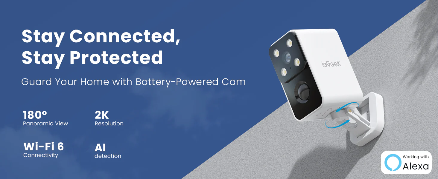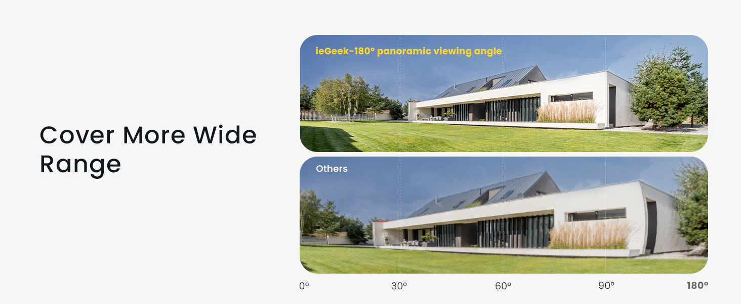 - 180° Horizon Coverage, Fewer Blind Spots: This outdoor security camera wireless has a 180° full horizontal rotation capability. Effortlessly scan entire surroundings with just a tap, covering every angle for 180° pan coverage that traditional home security cameras simply can't match. Zero Blind Spots, Ultimate Peace of Mind. ieGeek security camera offers a 2-year warranty.