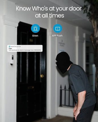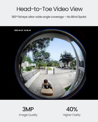 - HD 180° Head-to-Toe View: Get crisp 3MP video and a full 180° view. See visitors and packages clearly, day or night.