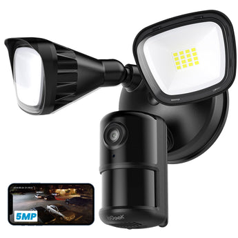 • Upgrade 5MP Pixels & Dual-Band Wi-Fi: Capture every detail with stunning clarity using our 5MP high-resolution floodlight camera. With advanced IR lights, you can see up to 49 feet (15M) in the dark, providing reliable surveillance day or night to help protect your property and loved ones. This flood light camera outdoor supports dual-band Wi-Fi (2.4GHz and 5GHz), ensuring stable, reliable, faster data speed connectivity for all your surveillance needs.