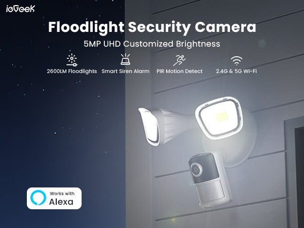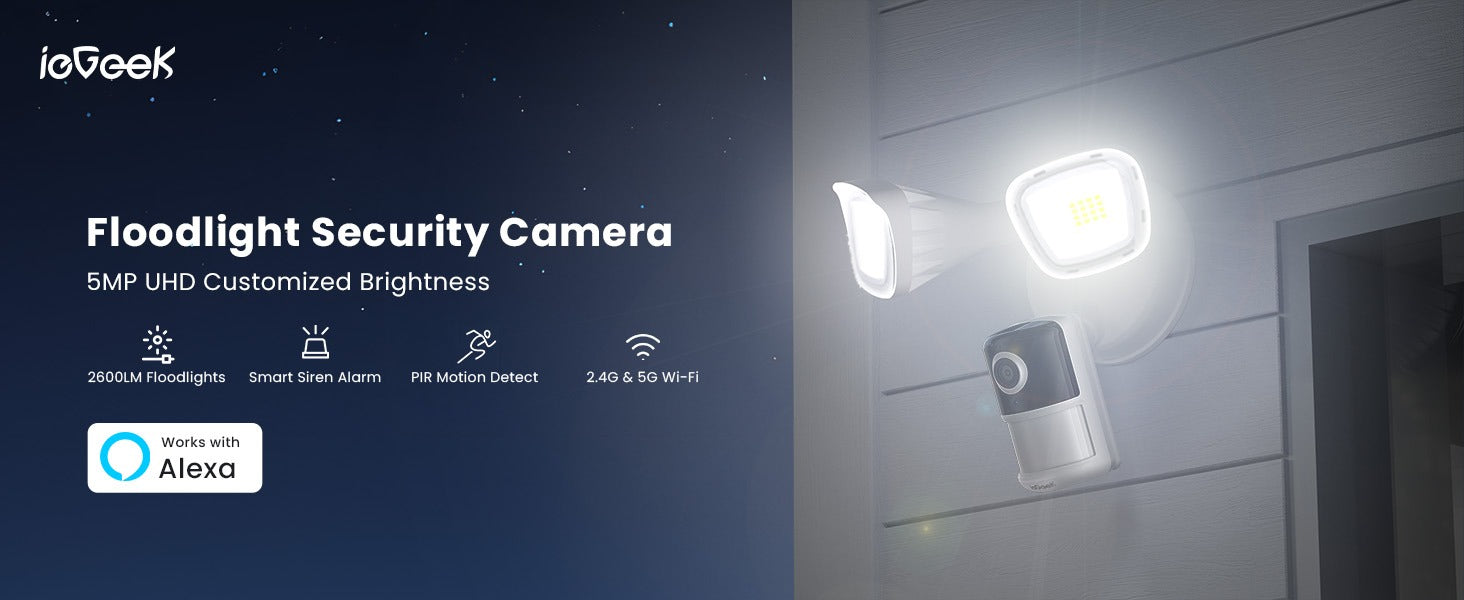 - Upgrade 5MP Pixels & Dual-Band Wi-Fi: Capture every detail with stunning clarity using our 5MP high-resolution floodlight camera. With advanced IR lights, you can see up to 49 feet (15M) in the dark, providing reliable surveillance day or night to help protect your property and loved ones. This flood light camera outdoor supports dual-band Wi-Fi (2.4GHz and 5GHz), ensuring stable, reliable, faster data speed connectivity for all your surveillance needs.