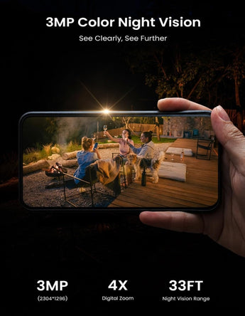 - Smart Motion Detection: AI reduces false alerts while 2K HD surveillance ensures accuracy. Your wireless outdoor camera notifies you instantly on your phone.