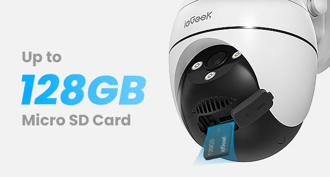 Use local microSD card (up to 128GB) for continuous or event-based recording. No cloud subscription is required for basic features.