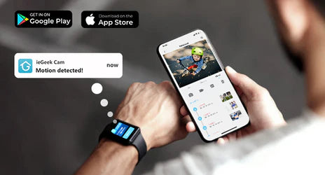 ieGeek Cam APP supports mobile phones/tablets/smart watches/work with Alexa.The smart watch can only receive notifications and access screenshots of alarm events, so as to quickly understand the general situation of the event.