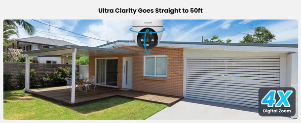 • Rotating PTZ Camera & IP65 Waterptoof: ieGeek outdoor security camera can easily control 355 ° Pan 120 ° Tilt and camera 4x digital zoom through the"CloudEdge"APP. IP65 waterproofing enables home security camera systems to keep functioning in any extreme weather, providing your home with all-round protection.