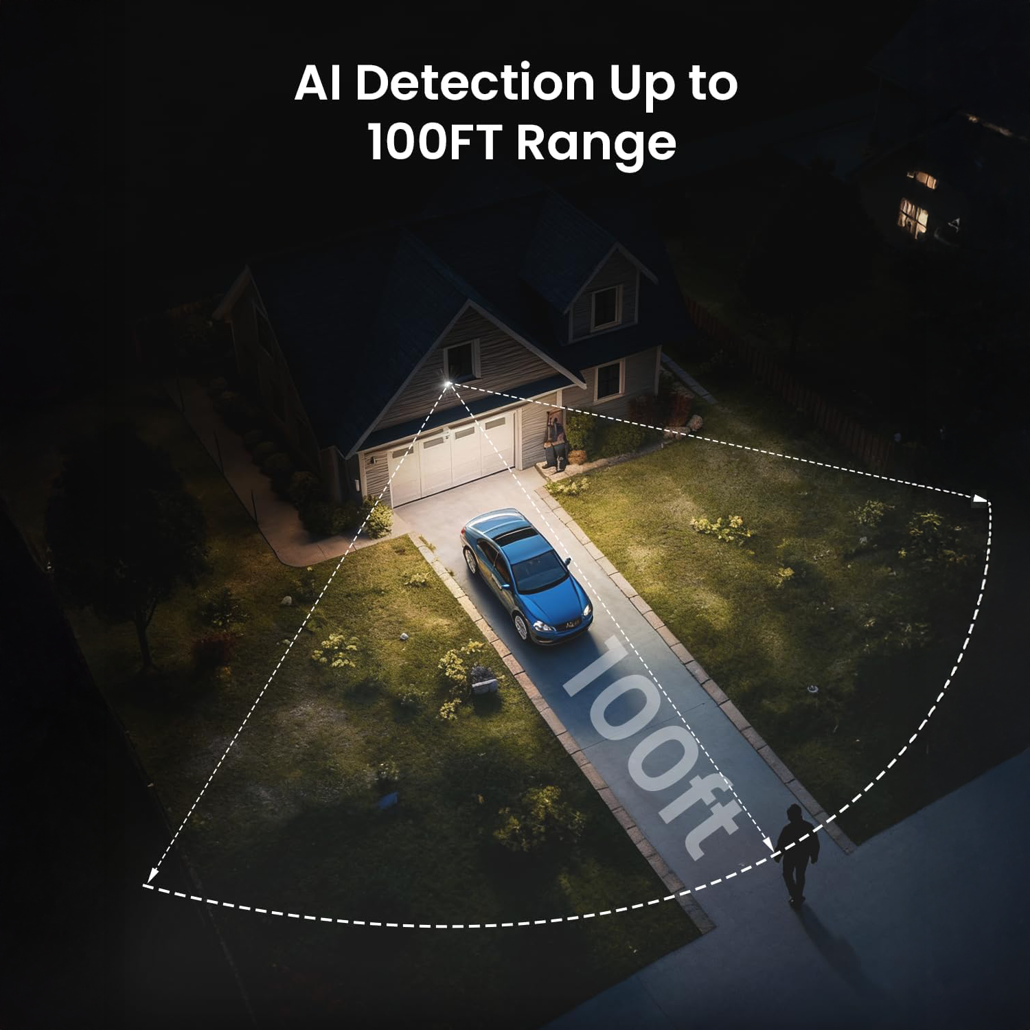 - 360° AOV Coverage: 360° AOV provides full area coverage, detecting motion up to 100 feet for complete security.