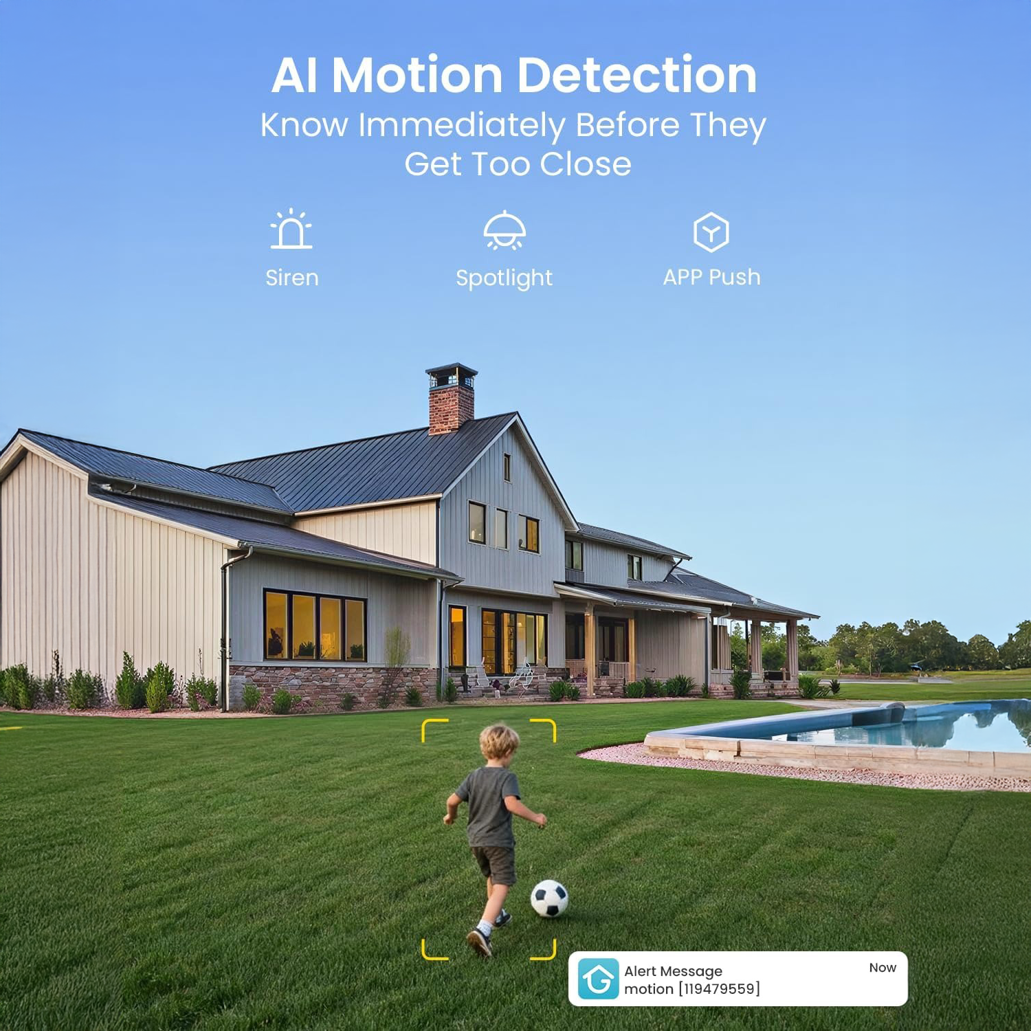 - Solar-Powered 24/7 Recording: Continuous 24/7 recording with solar charging and a 9000mAh battery for non-stop security.